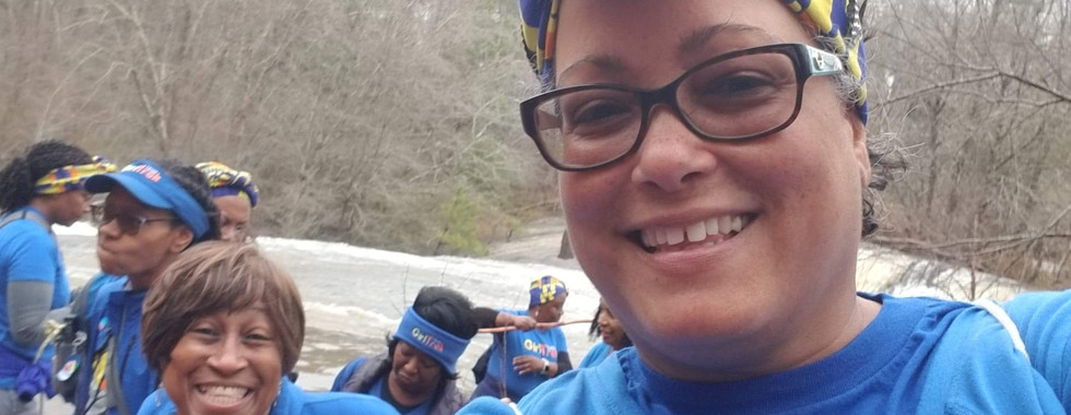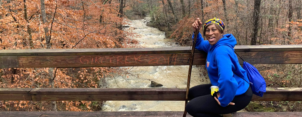 The descent was as great as the ascent. Truth is we are our sisters keeper. No sister is ever left behind, and we take care of our own. After we made it to the base of the final fall, we had to have a group selfie. Let the foolery begin. Dynamic Deb here has had the selfie stick with the remote control and tripod sitting in her Amazon cart a few days before the ch8se, because she kept forgetting, and didn't think of it sooner. Knowing that it would not arrive in time for the January 1st ch8se, she didn't order it, but sure wish she had. Watch this.